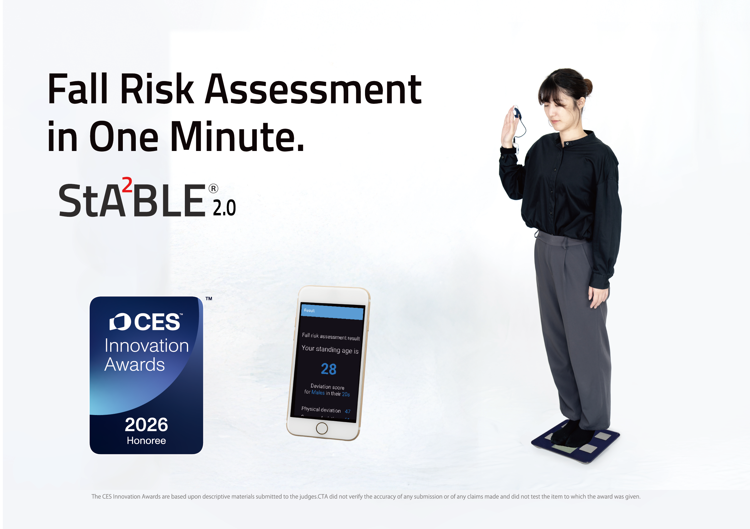 Falls have become a significant societal issue. The StA²BLE fall risk measurement device assesses both physical and sensory function in just one minute, accurately evaluating hidden fall risks. For those at high risk, it proposes exercise-based improvement strategies.